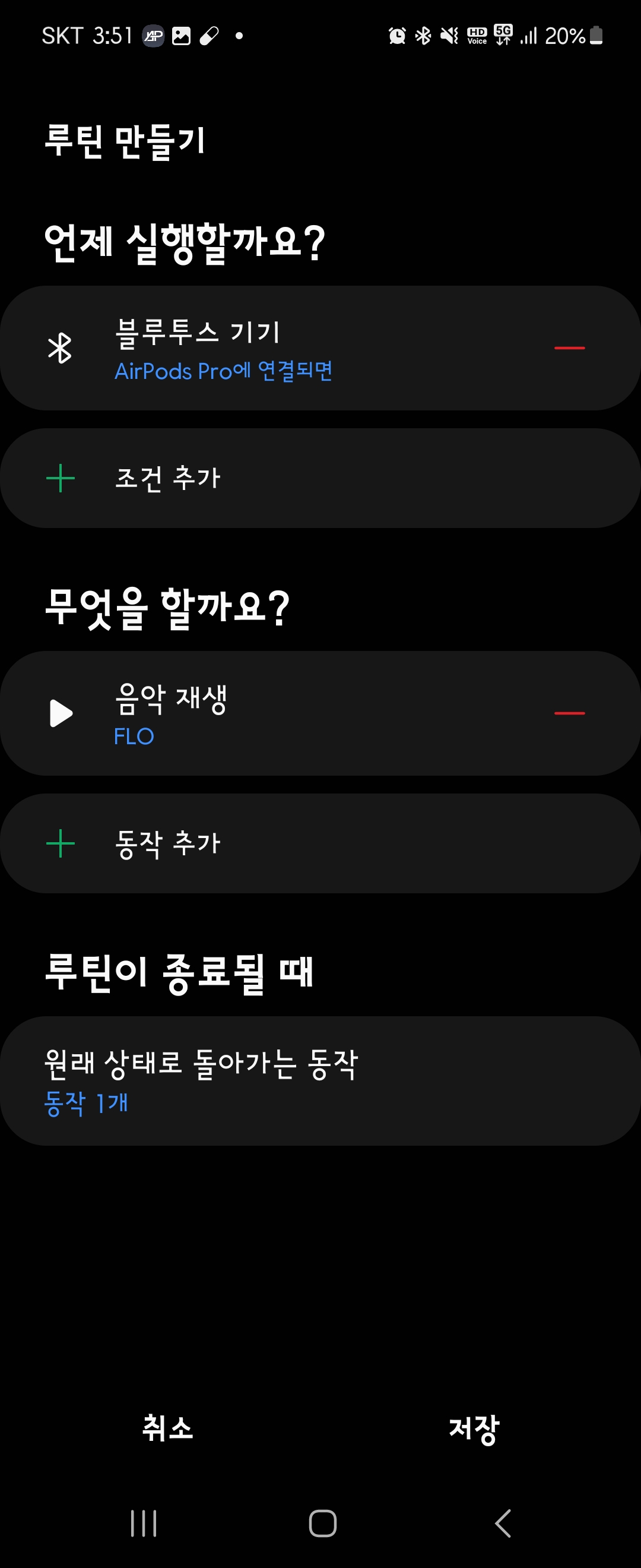 + 이 루틴으로 실행할 동작 추가하기 를 클릭하여
