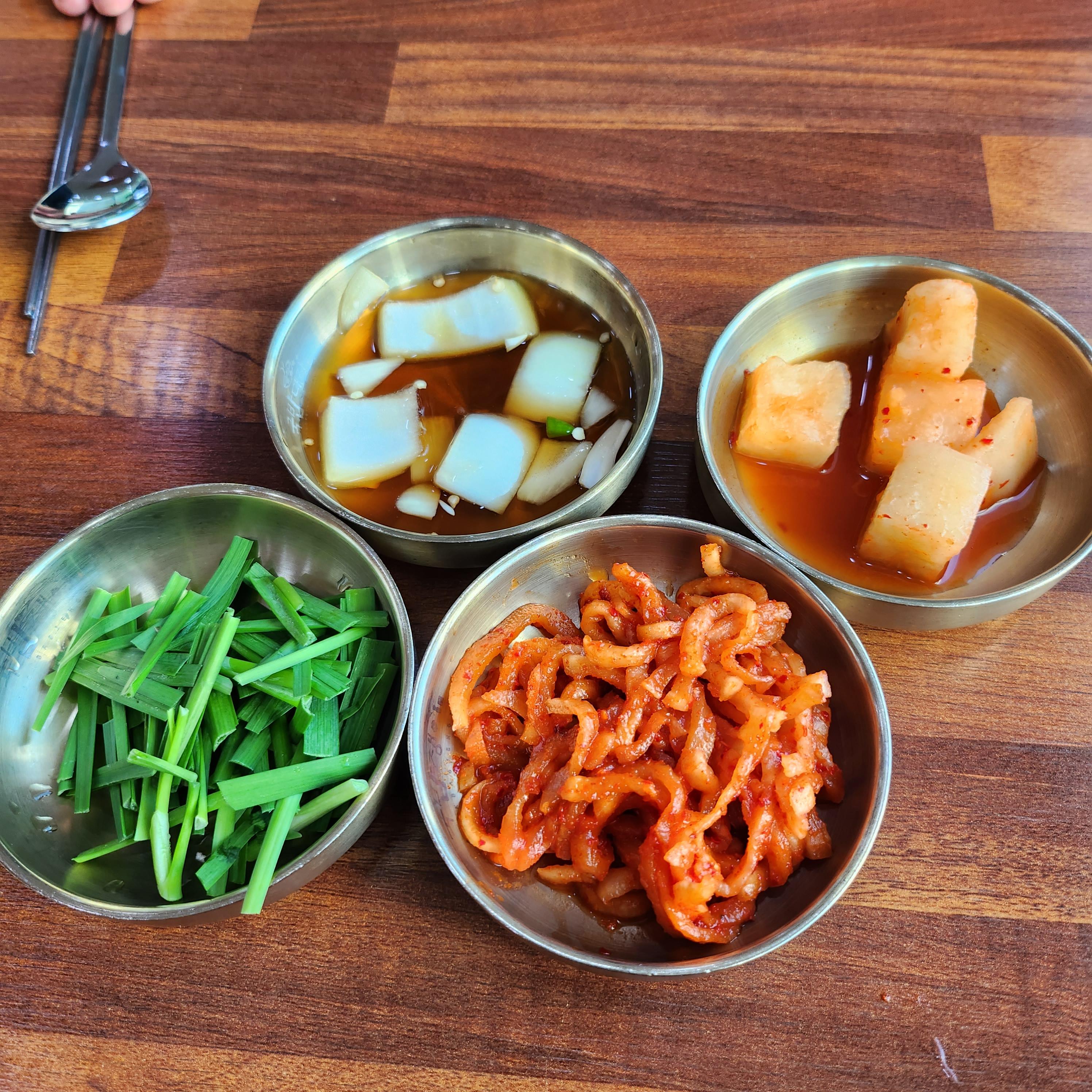 국밥에 필요한 다양한 밑반찬들이 있었습니다.