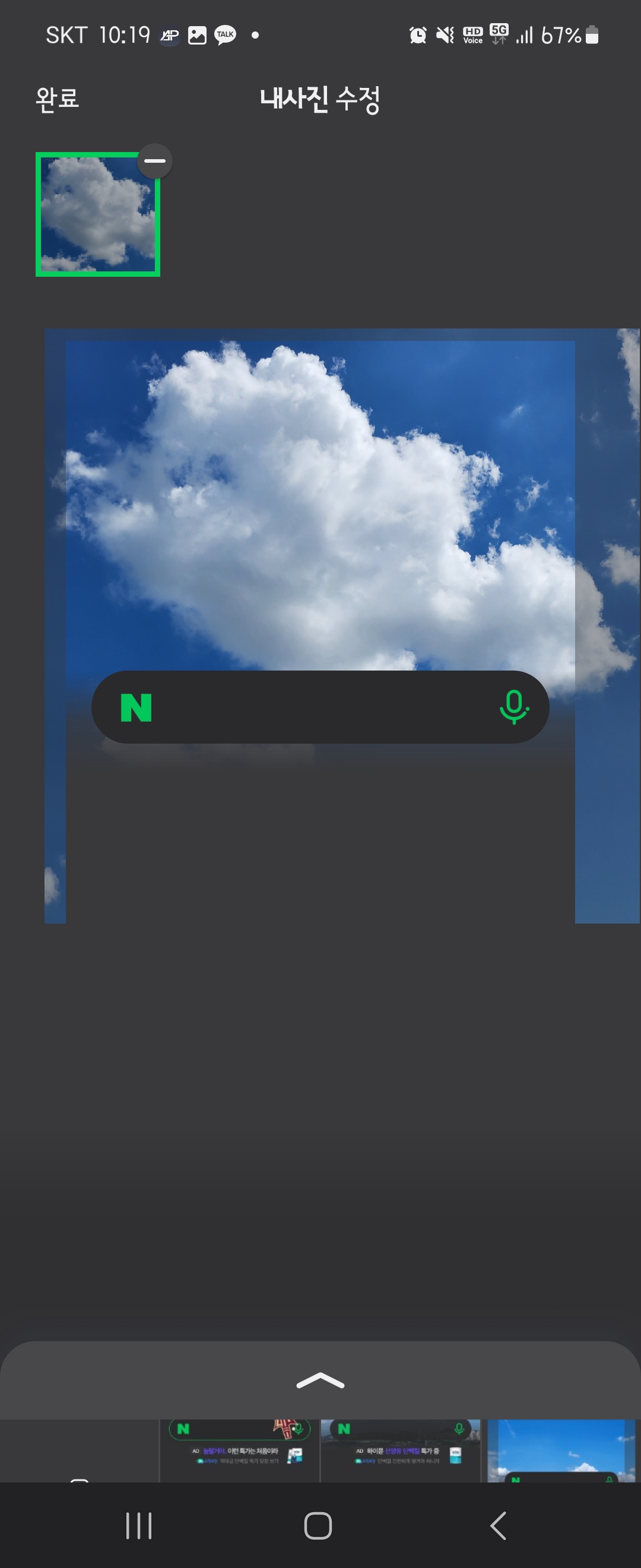 - 완료 되면 아래와 같이 특색 없던 화면에서 선택한 사진이 배경으로 되어 있는 네이버 앱이 됩니다!
